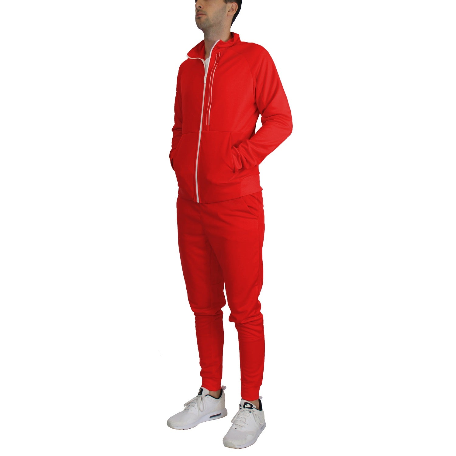 Wholesale Men's Two Piece Training Set Tracksuit in Red
